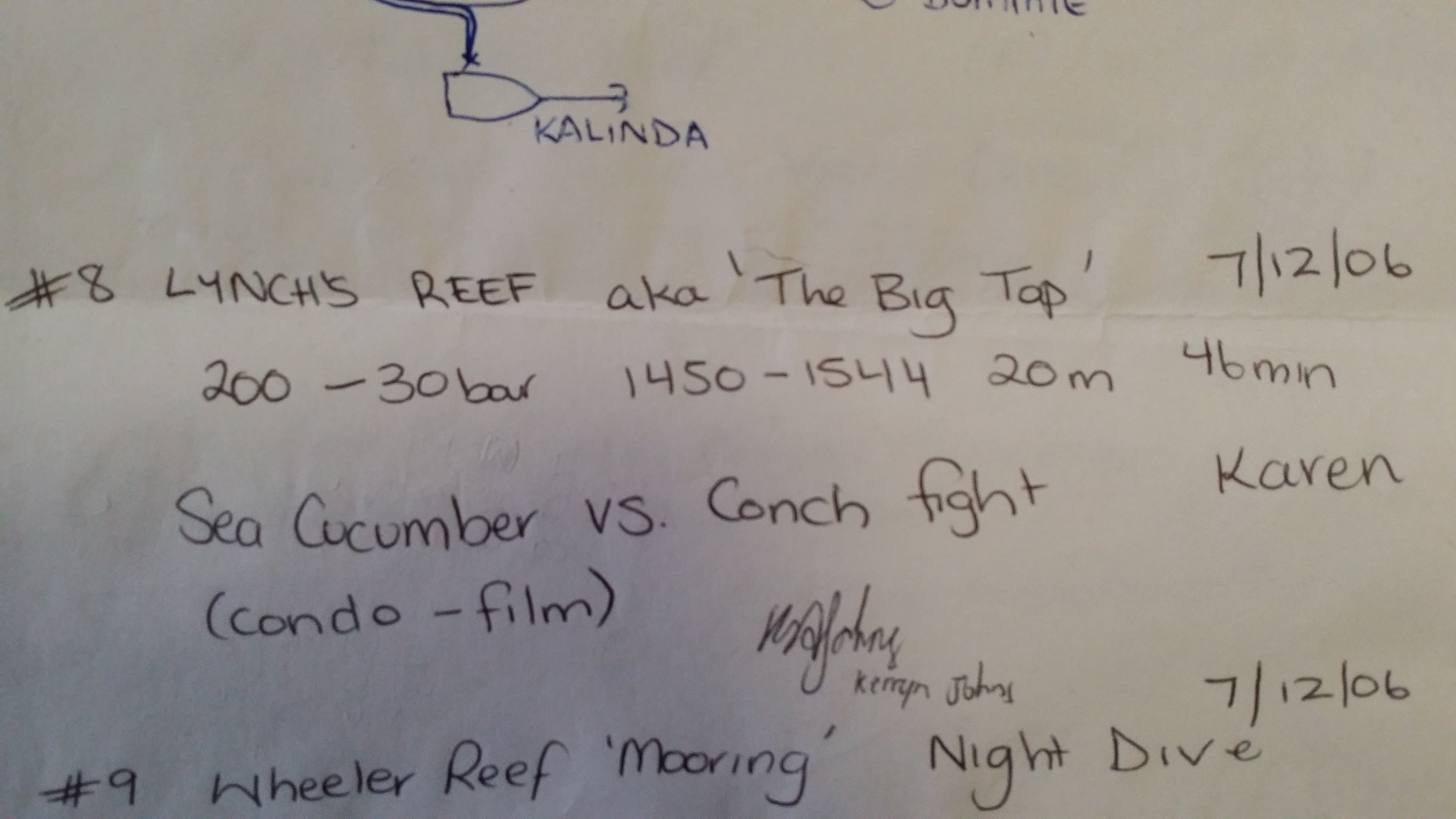 Dive 6 Guiding Advanced Course Naturalist Dive around Viper ReefDive 7 Dive at Viper Reef with Kalinda Crew Condo & TomDive 8 at Lynch ReefDive 9 at Wheeler Reef for a Night Dive