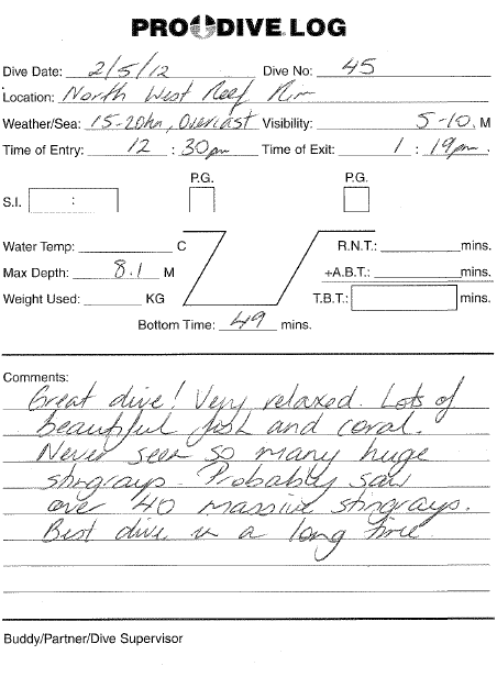 Diving at North West Island 2012 on Gladstone State High School Marine Studies, Biology and Geography Camp. Rebecca Huth’s dive logs (because I didn’t keep any from the week).