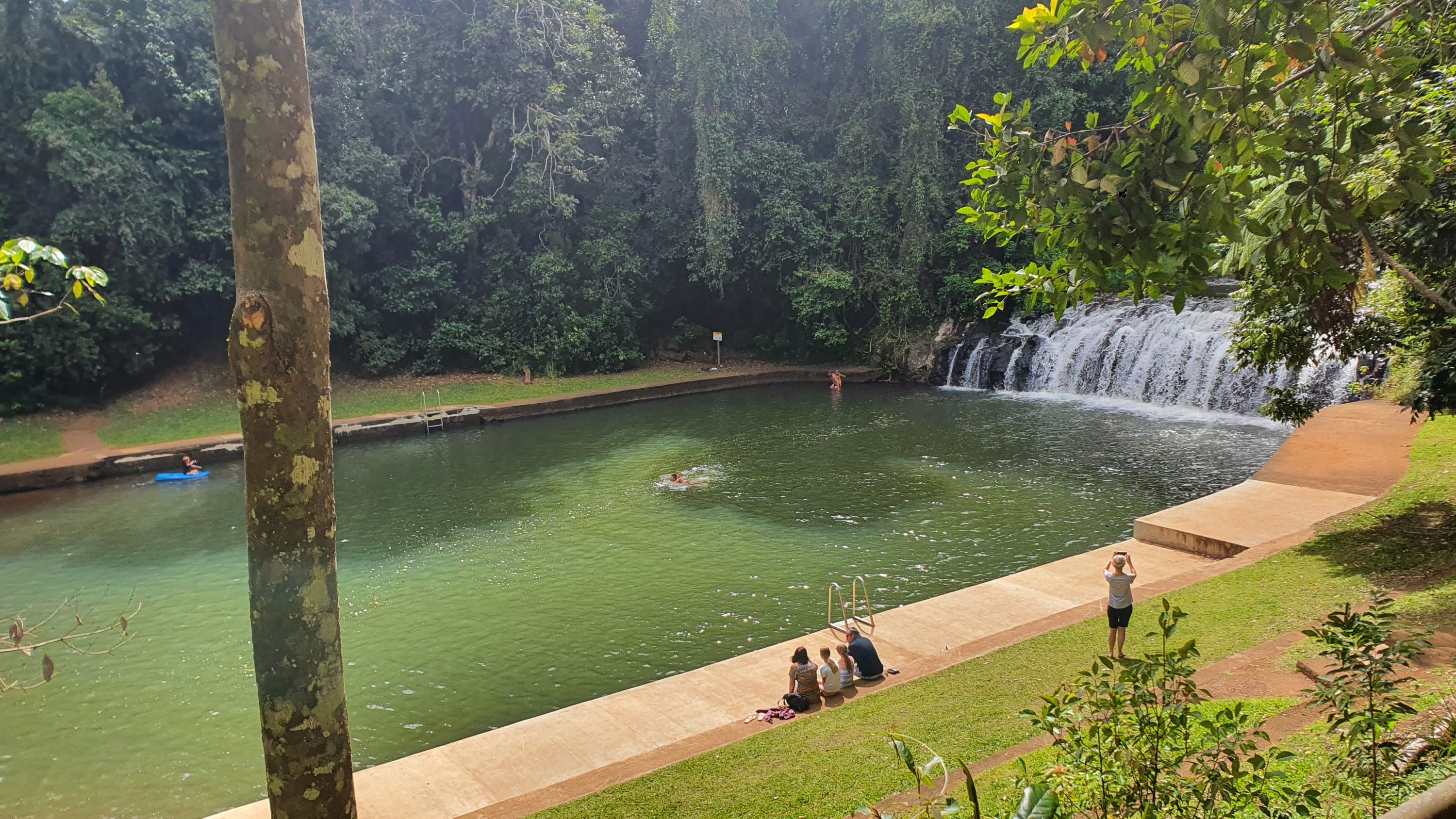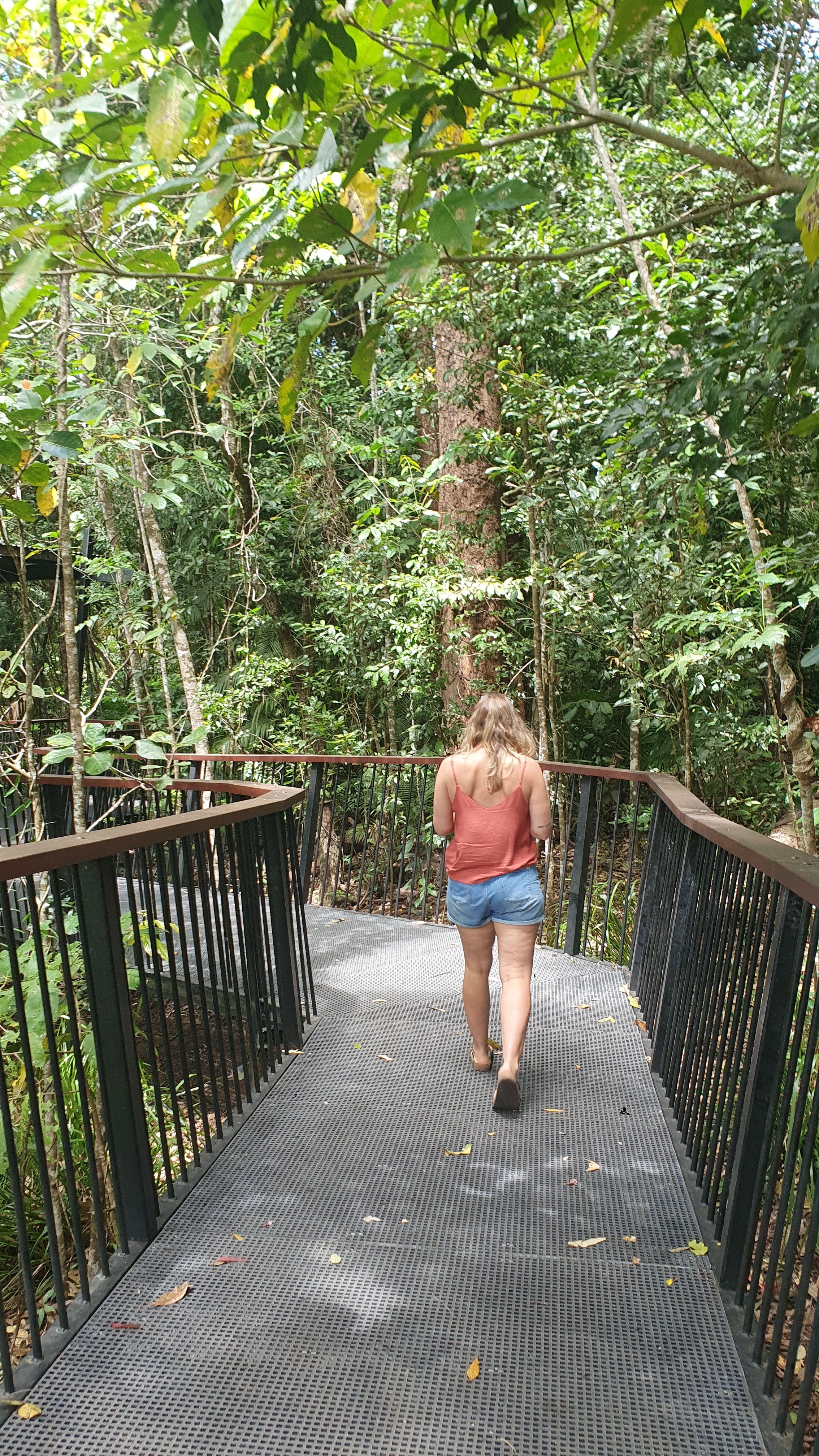 Tuesday 21 September we jumped in the car and headed north! We had a few planned stops we wanted to check out but no rush to get there. First stop Tyto Wetlands in Ingham for an explore and watch the turtles. Next we stopped at Cardwell to walk the jetty and ducked into Cardwell Spa (which unfortunately was dry). Lunch stop at Babinda Boulders with the march flies and a sneaky swim at Devils Pool. And then afternoon tea and climbed the Big Gumboot at Tully before our run into Cairns to check in at the dive shop. Then dinner at Prawn Stars!