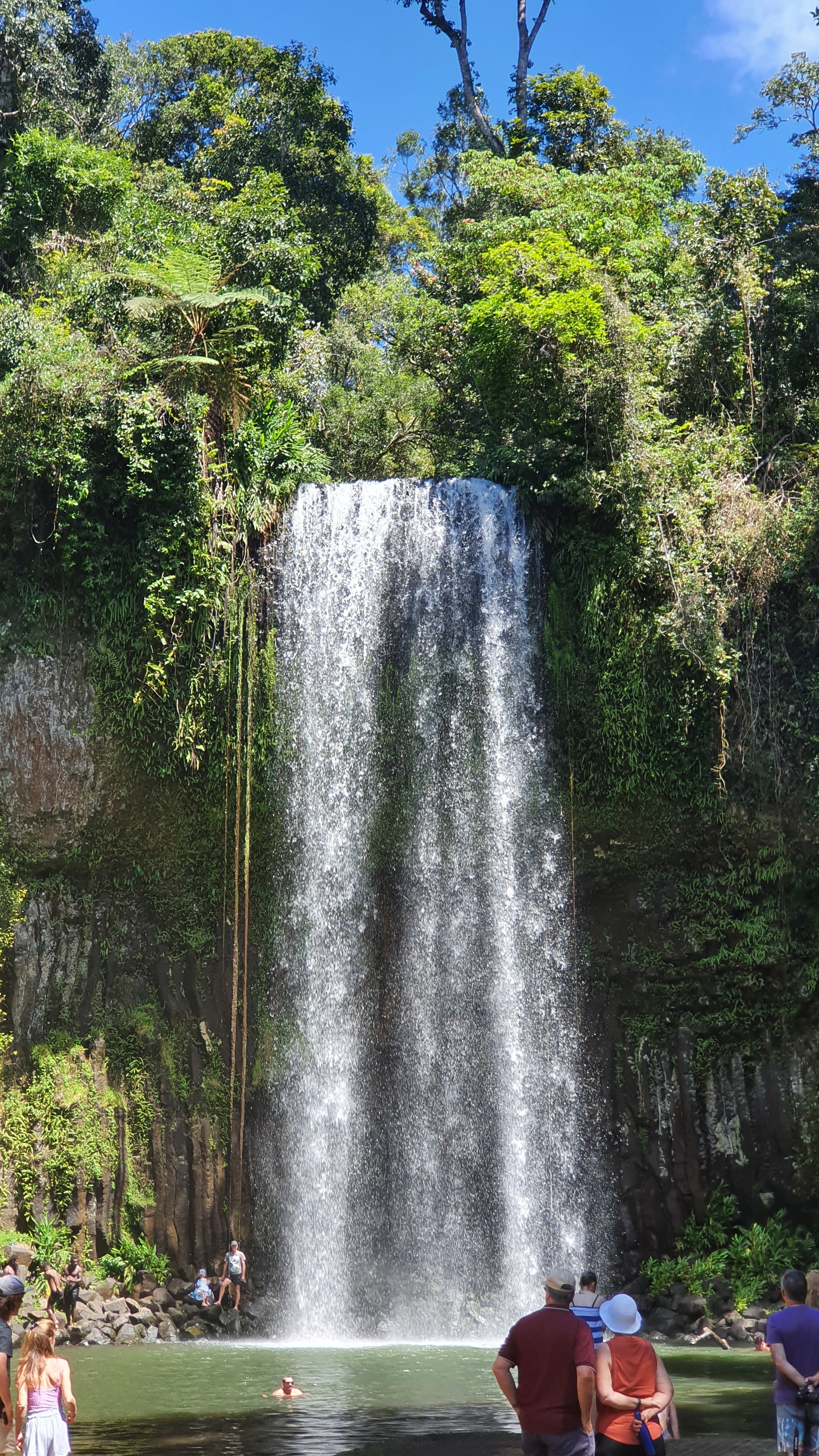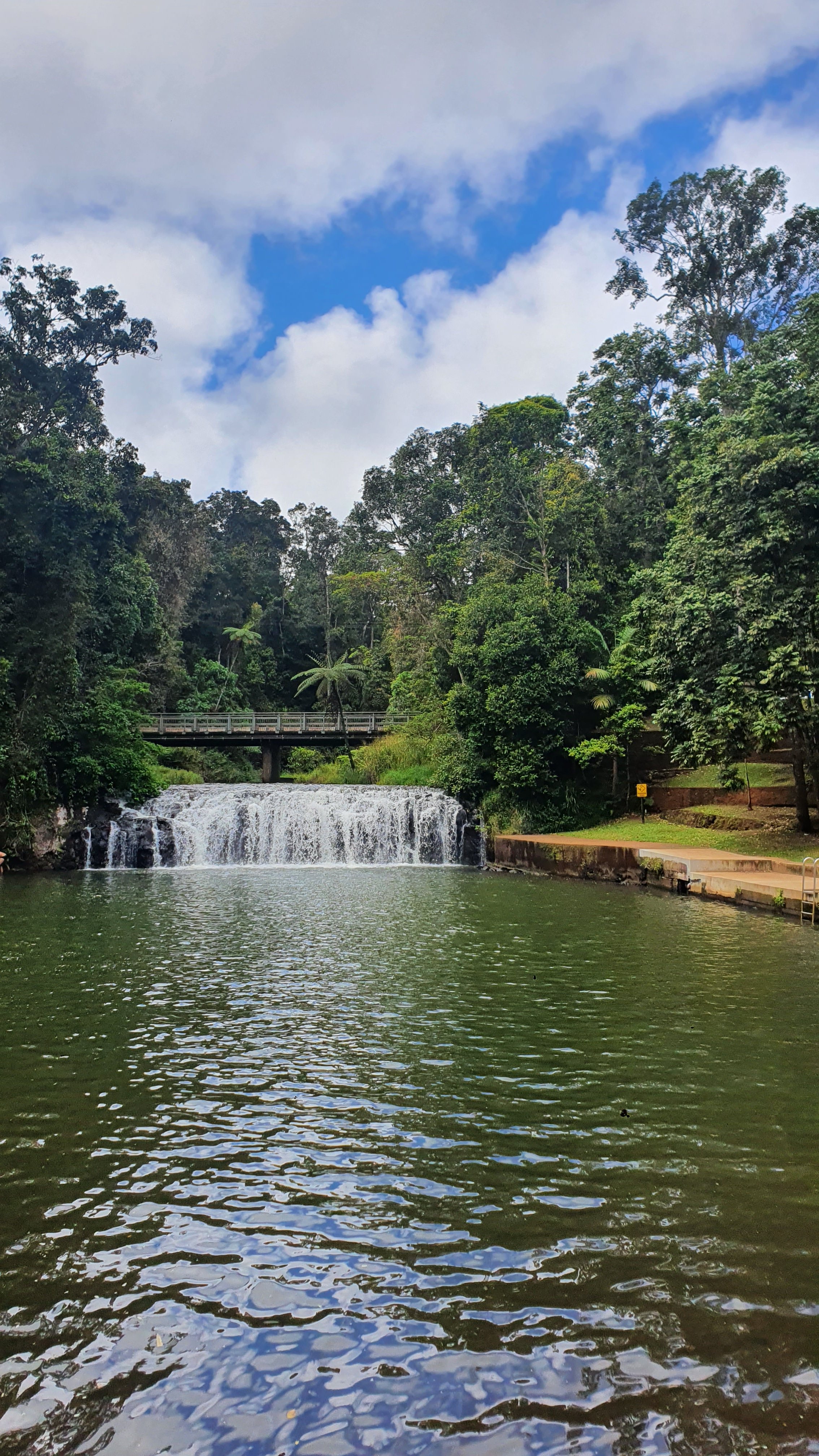 Saturday 25 September we packed up and headed up the hill to Kuranda. Checked out the waterfall and train, wandered around the markets and had lunch. We then headed towards Atherton and randomly pulled into a few cool spots to check out the cool view and giant fern gully style trees. We decided to stay at Yungaburra and found the Platypus in the creek behind town and camped at Lake Tinaroo.