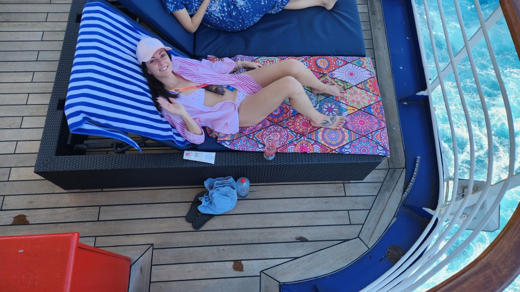 Jess and I boarded Friday afternoon 20 October, for a weekend of cocktails and relaxing. White Party Friday night, saw us enjoy dinner at Luke’s and dance the night away on deck.